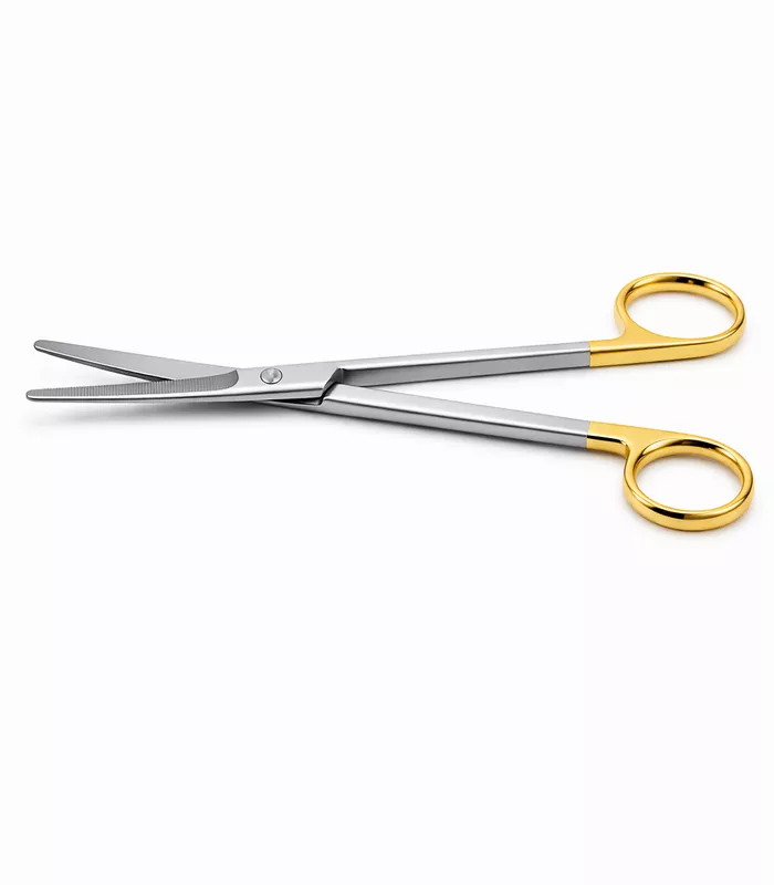 Equipped with blunt tips, these scissors support safe blunt dissection techniques. The distinctive gold ring handle indicates Tungsten Carbide inserts and provides enhanced visibility and premium identification within surgical sets. The ergonomic ring handle ensures balanced handling, stability, and reduced hand fatigue.